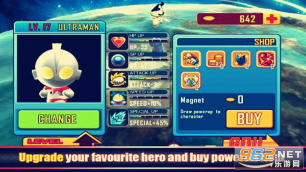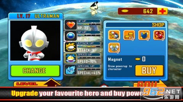 一款经典动作游戏,以奥特曼为题材。话说,这次奥特曼还是打小怪兽嘛?这个是必须的,而且打的多能获得更多的金币。利用这些金币买武器装备自己,提高自己的战斗力,一起来拯救地球吧。