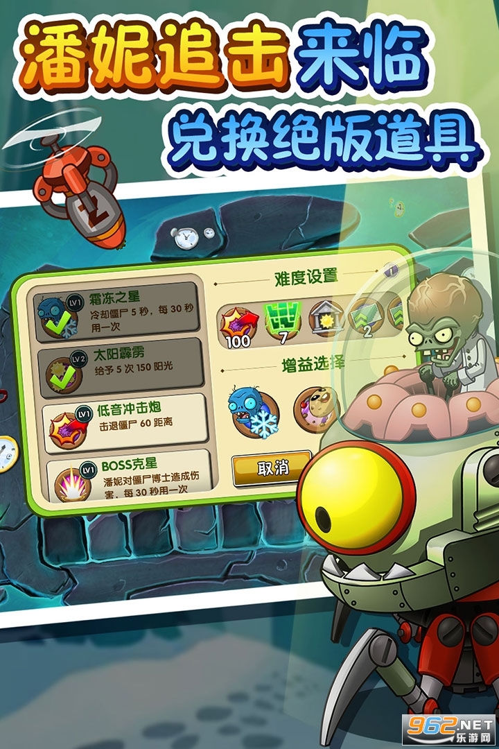 4.新技能保护你的脑子!全新概念的植物能量和手势道具将时空挑战带入一个新的纪元。使用植物能量豆来激发你植物的潜能,用金手指捏、轻弹、划动僵尸,保护草坪,保护脑子。