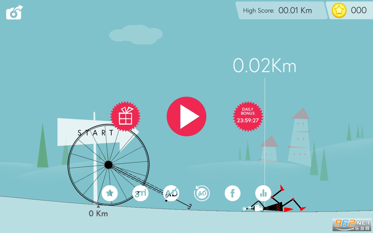 死亡车轮模拟器游戏是一款骑着车轮去冒险的休闲游戏,火柴人冒险家发现独轮车的妙用,在新的冒险路上开始挑战,玩家手指操控独轮车保持平衡,如何度过路上的障碍是你需要思考的问题,简单点击屏幕,用上帝视角观察车轮,如果要失去平衡,你尽快的拉回来。