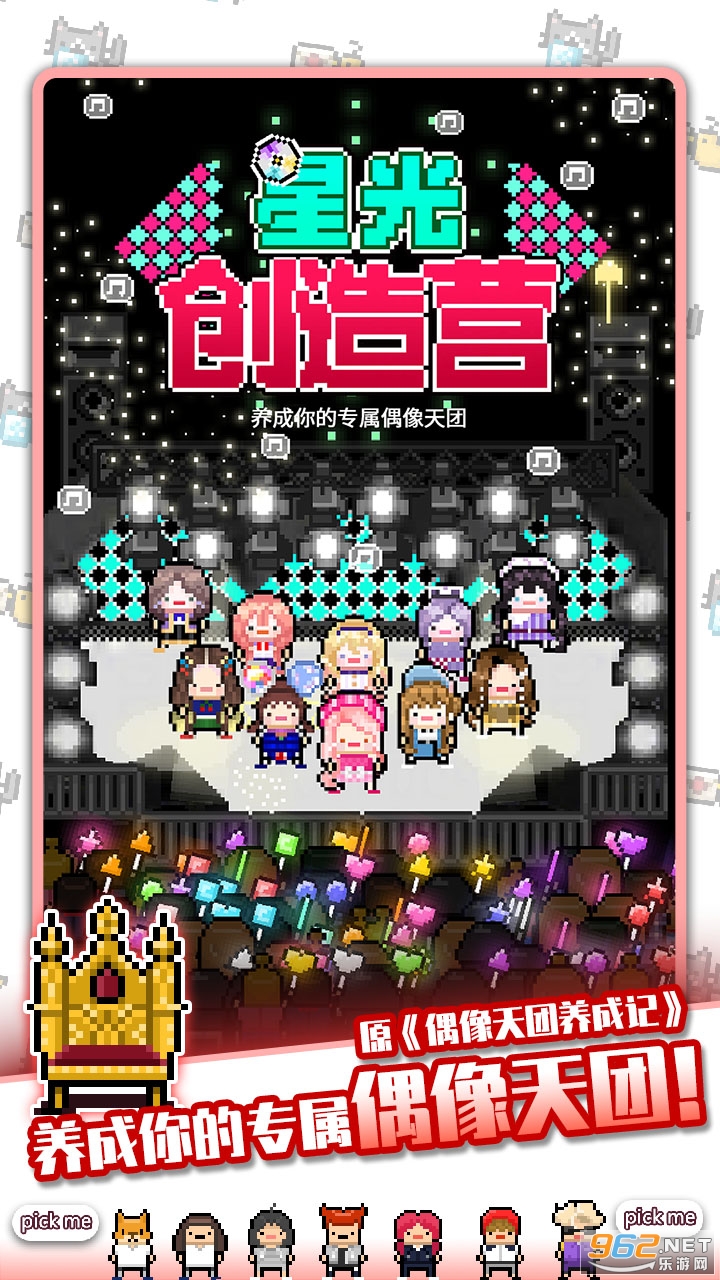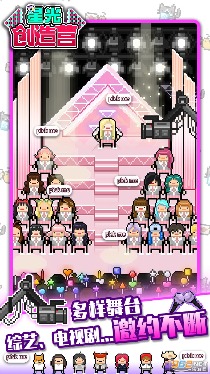 《星光创造营》是一款像素风格的偶像题材模拟经营游戏,游戏中玩家将成为偶像公司的老板,你将挖掘各种各样的练习生进入你的公司,然后有针对性的进行养成,然后送他们参加各种各样的节目,组建宇宙第一偶像团体,赶快下载体验吧!