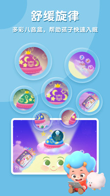 3、是时候和碰碰狐一起睡觉了,听好听的摇篮曲,打开夜灯八音盒,数数小羊,在优美的旋律中入睡。