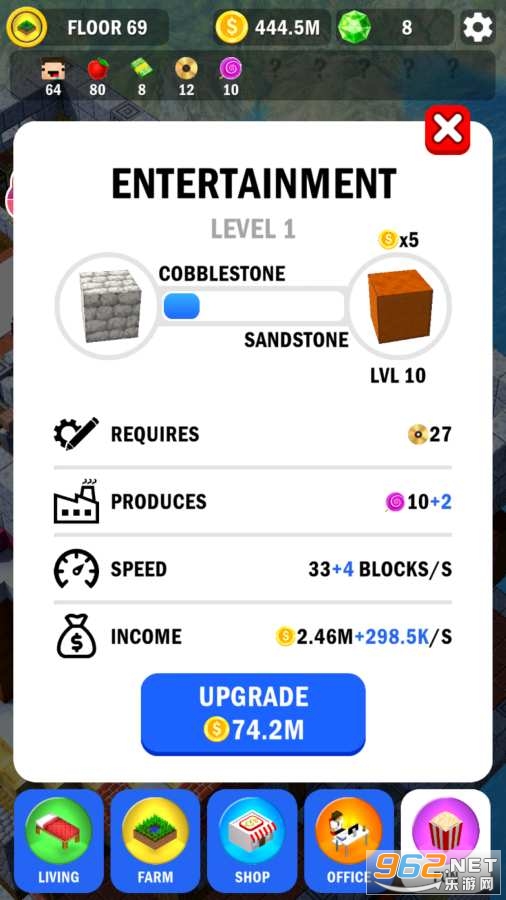 选用合适的材料,来不断的在游戏中打造不同的楼层;