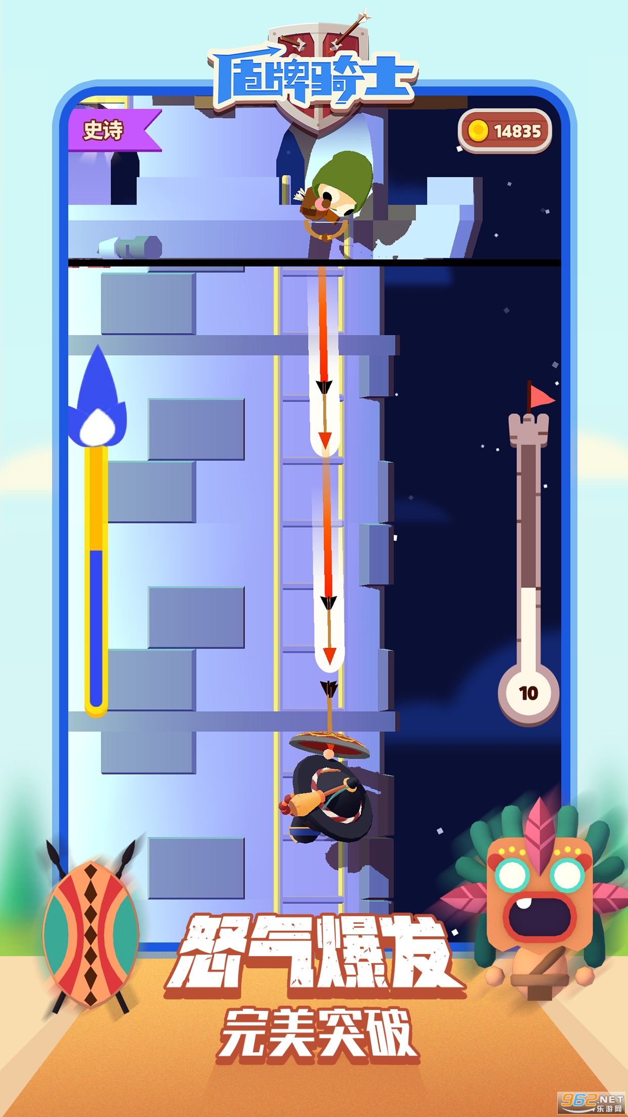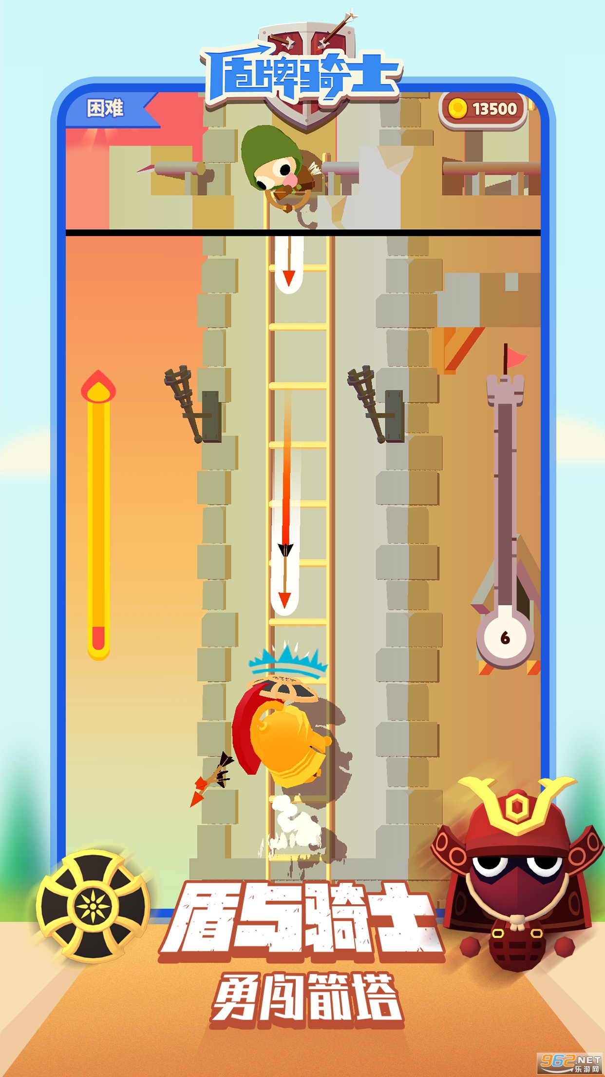 一款非常不错的休闲益智闯关游戏,游戏的操作简单容易上手,玩家将化身为英勇的骑士顺着云梯不断的向上,使用手中的盾牌来格挡攻击,同时注意各种各样的机关和陷阱,最终成功的到达城墙上,游戏中你还需要经营你的城堡解锁更多的皮肤,推荐给喜欢休闲游戏的玩家。