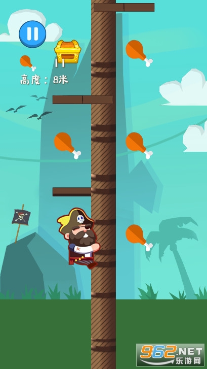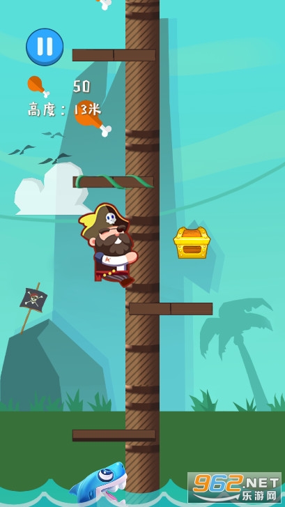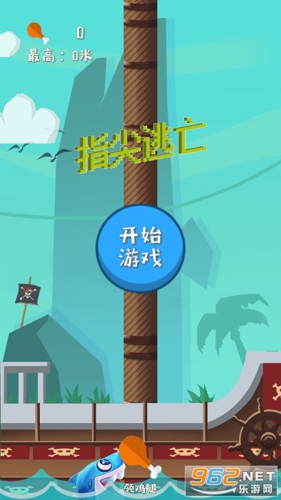 《指尖逃亡游戏最新版》是一款敏捷闯记录小游戏,倒霉的海盗船长只有爬桅杆来逃生了,不要犹豫哦,桅杆下面有鲨鱼,海水还会不断的上涨,你要让海盗船长左右攀爬,收集桅杆上的鸡腿,并且不能碰到桅杆上的枝丫,这样船长才能继续爬。