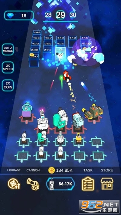 在您的武器库中解锁各种加农炮。合并以升级大炮并在战术上定位,以防御越来越强大的魔方浪潮和致命的boss。