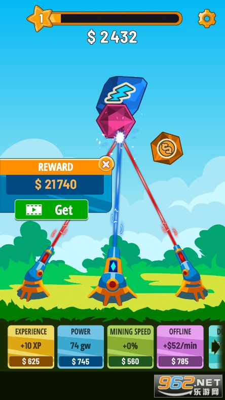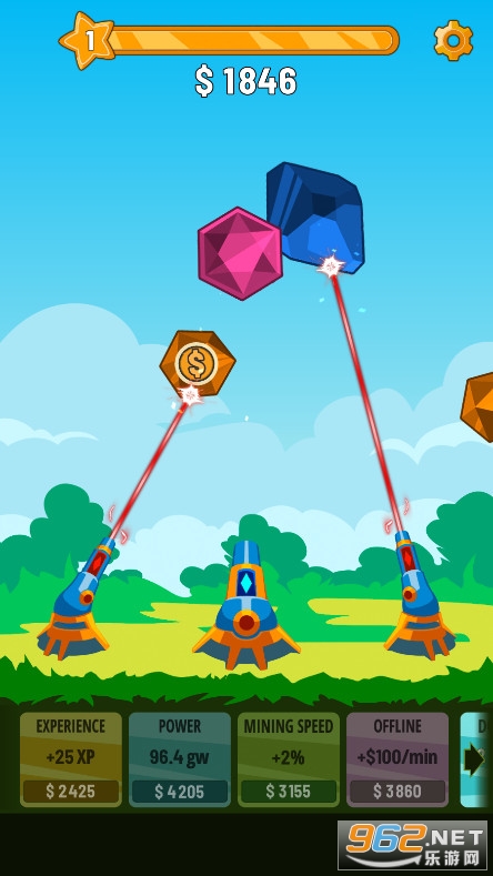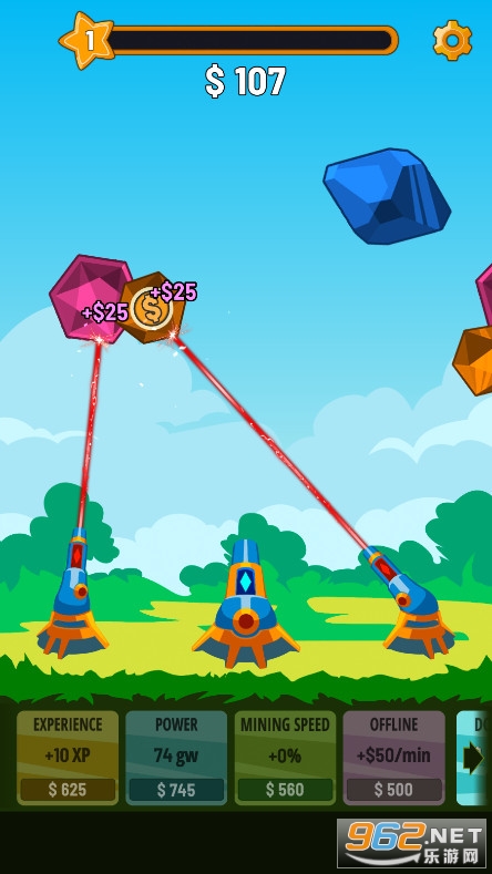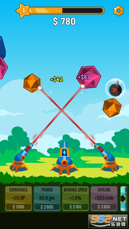 《水晶大炮射击手游》是一款很有意思的射击小游戏,天空上会有很多宝石飞过去,你要控制你的大炮去射击那些宝石,轰炸掉的宝石越多,你得到的金币就越多,你还可以集中火力对付一个宝石,有的宝石基友特殊功能,你可以去轰炸他获得能力。