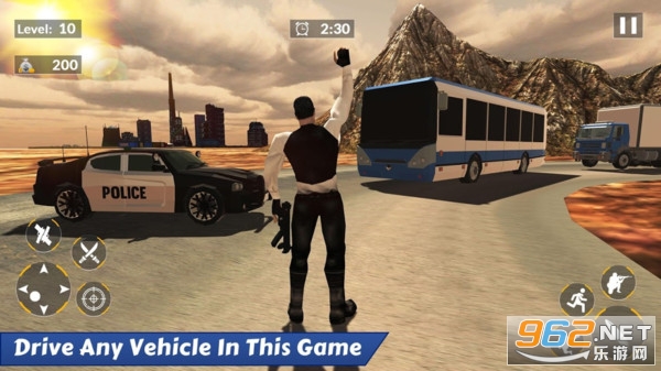 1、丰富的枪支可以解锁,在街头展开枪战,击毙各种绑匪等等,无比的刺激与警察;