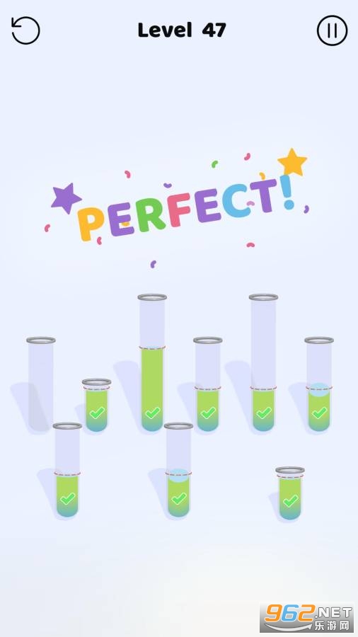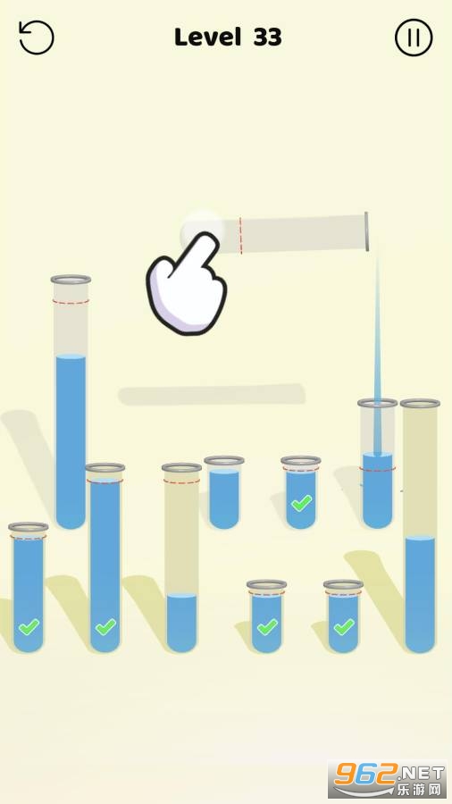 《试管分水安卓版》是一款休闲解压风格的分水闯关小游戏,游戏的画面很小清新,玩起来也很简单,游戏中玩家要控制你的水量,每个试管里面注入的水量要刚刚好达到刻度线哪里,不能多也不能少,要求你对刻度的精准把握,快来挑战一下吧。