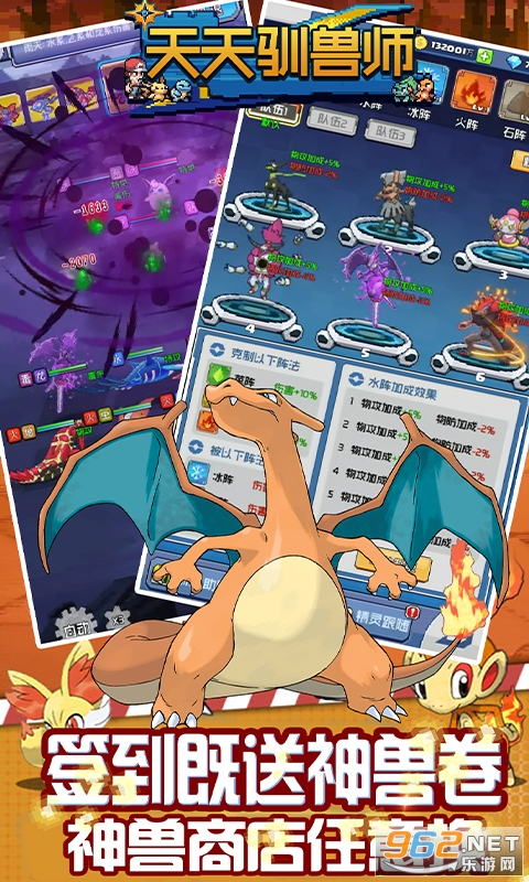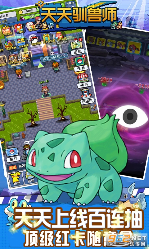 《天天驯兽师-每日送百抽》游戏高度还原了经典的掌机玩法,且新增了自动寻路、离线收益,离线自动闯关等挂机元素,上线每天均可领取100张扭蛋卡,顶级红宠、神兽碎片均可以从扭蛋机中获取。累计签到还送神兽卷、可以直接去神兽商店兑换牛逼神兽,只要肝,游戏里面什么都能获得。