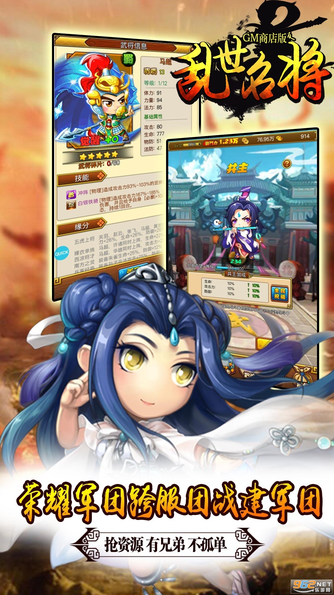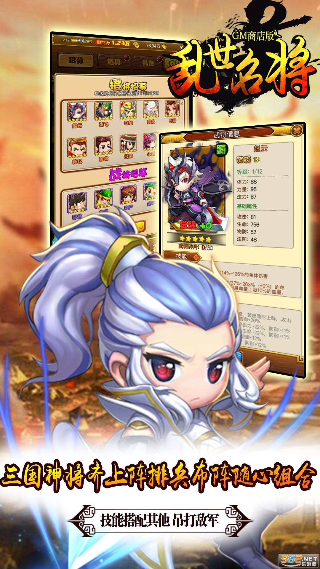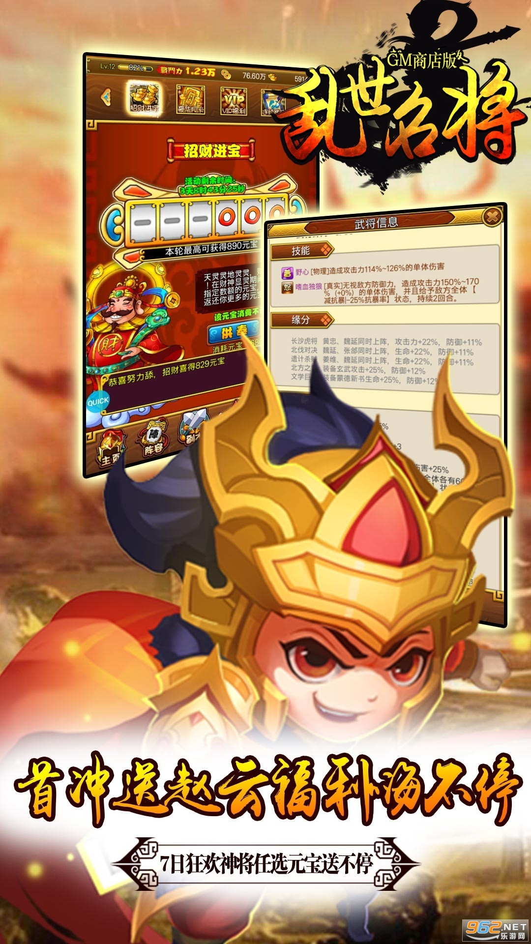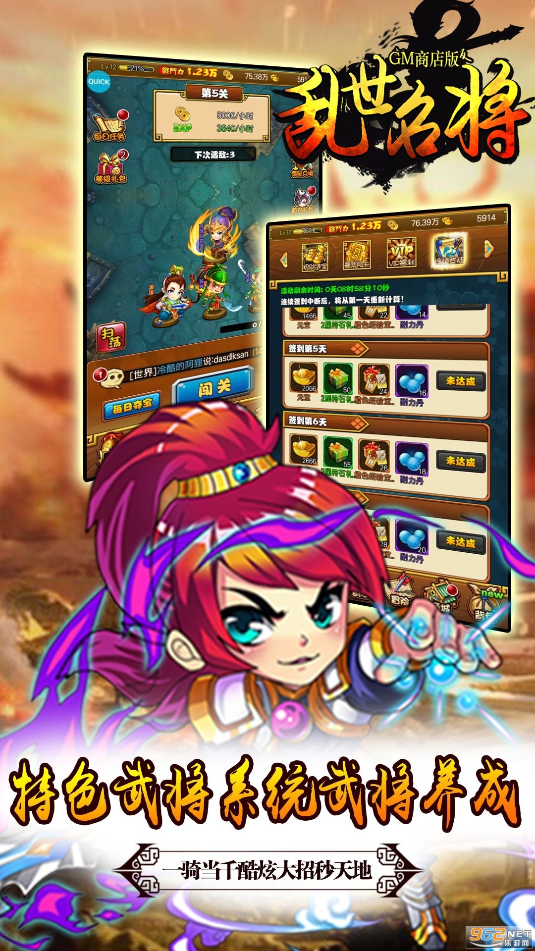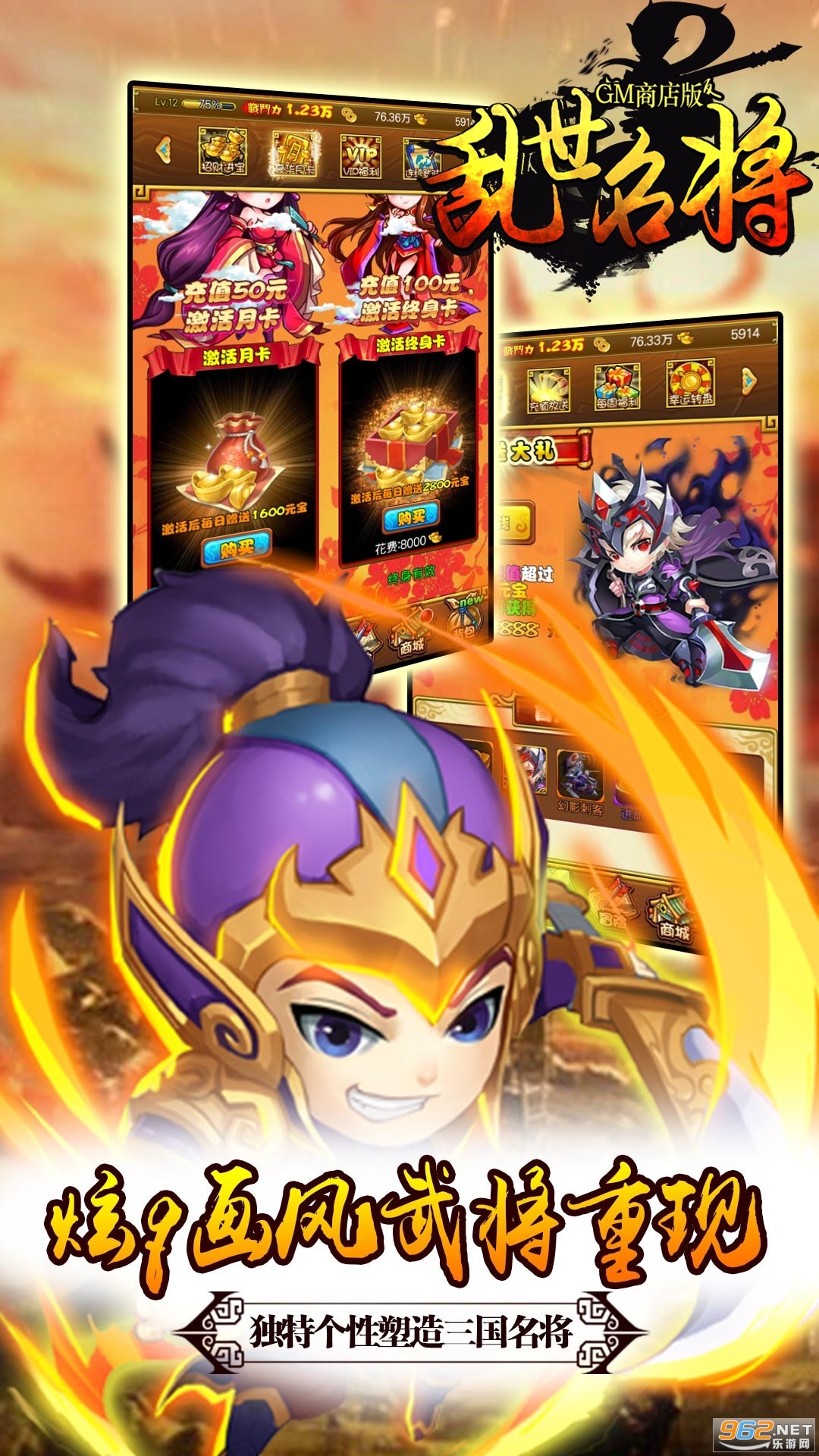 游戏内上线送满v,送15000金判,送武将。开通GM权限后,在GM商店里面每天可以免费拿海量金判,顶级红色武将等等海量道具《乱世名将gm商店版》是一款全新的策略回合卡牌对战游戏,经典画风武将、专属战斗动作、傲娇对话独白、演绎Q萌新境界。碎屏级怒气必杀特效,腾空、连击、爆发,让你的战斗体验一气呵成!以丰富多变的战斗体验、知名画师制作的超精美卡牌、大师级的画面表现以及极富策略性的玩法带领玩家重回烽火连天的三国,呈现前所未有的全新三国体验!