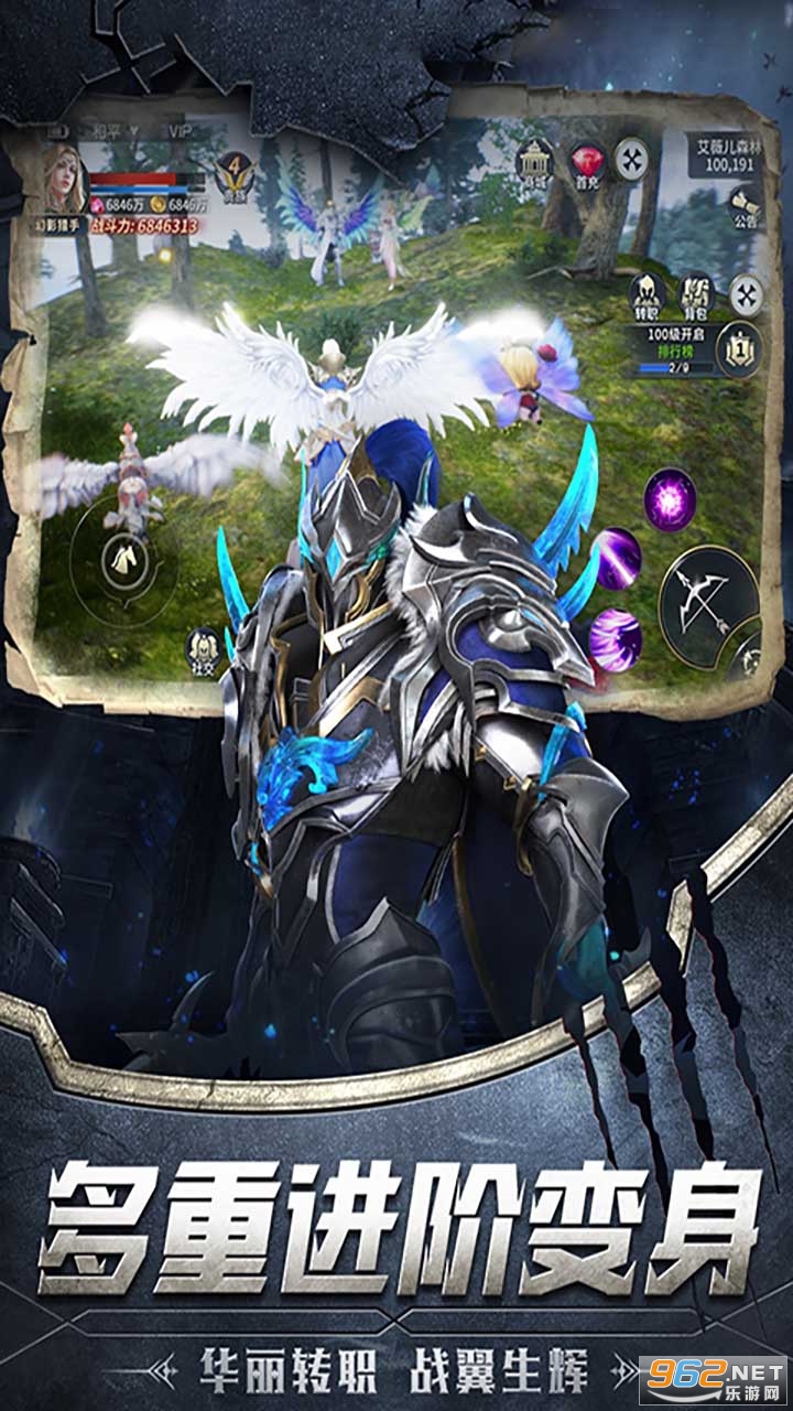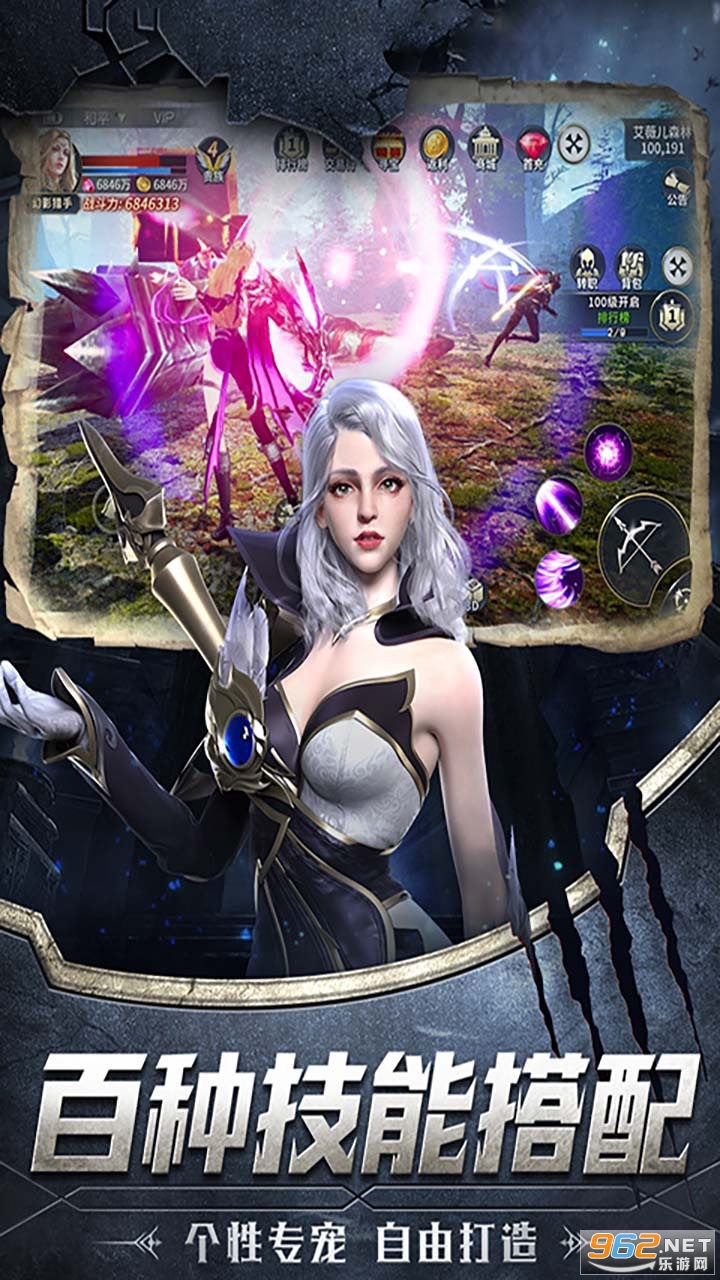 1:游戏有着U3D引擎完美渲染而成,史诗级的画质表现,多种职业角色选择,炫酷华丽的技能特效全屏绽放。