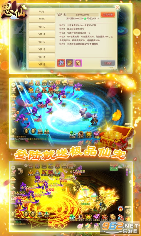 满VIP,登录就送V15。《思仙-定制版》一天百级登录送满V的变态回合制游戏震撼来袭!