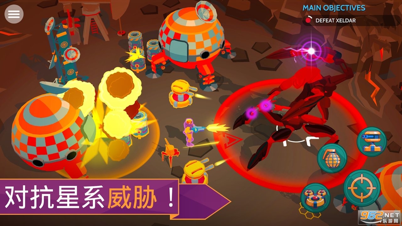 从进攻性的机器人到大型装甲到有毒大黄蜂,面对巨型终极怪物,每一个都有独有的进攻和防守能力,包括增强的装甲和强力的集束炸弹。外星人射击 动作游戏从没有这么刺激过!