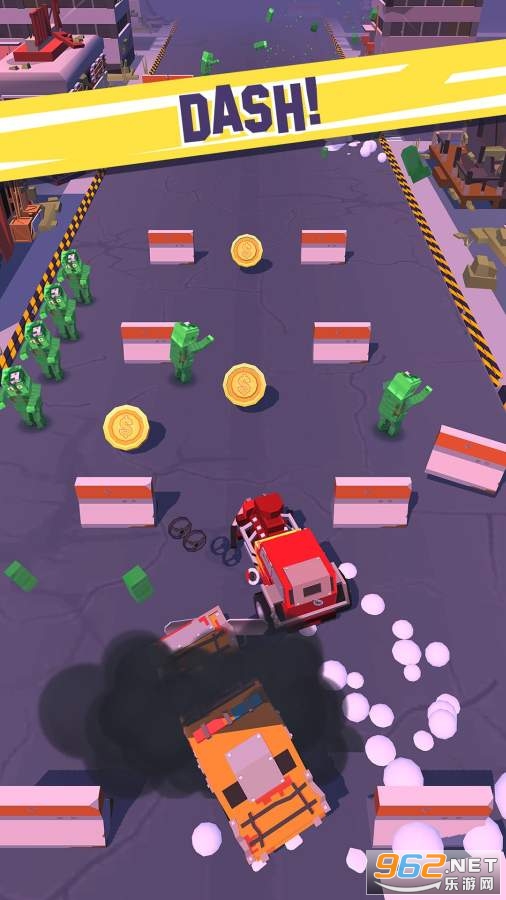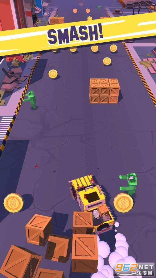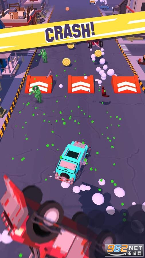 2、每一关卡都有无数的汽车,你可以用手中的道具一步一步地砸碎它们;