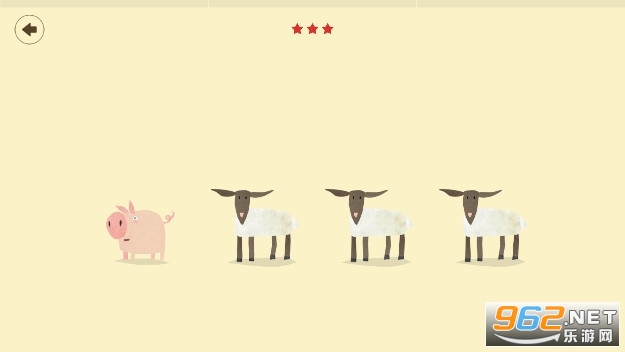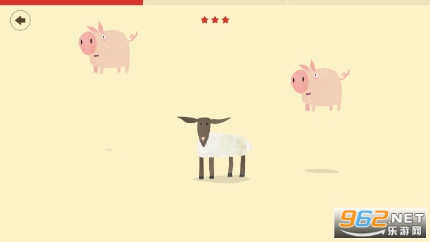 2、两只绵羊和一头猪,哪一个不合适?是猪,单击选中它,恭喜闯关成功;