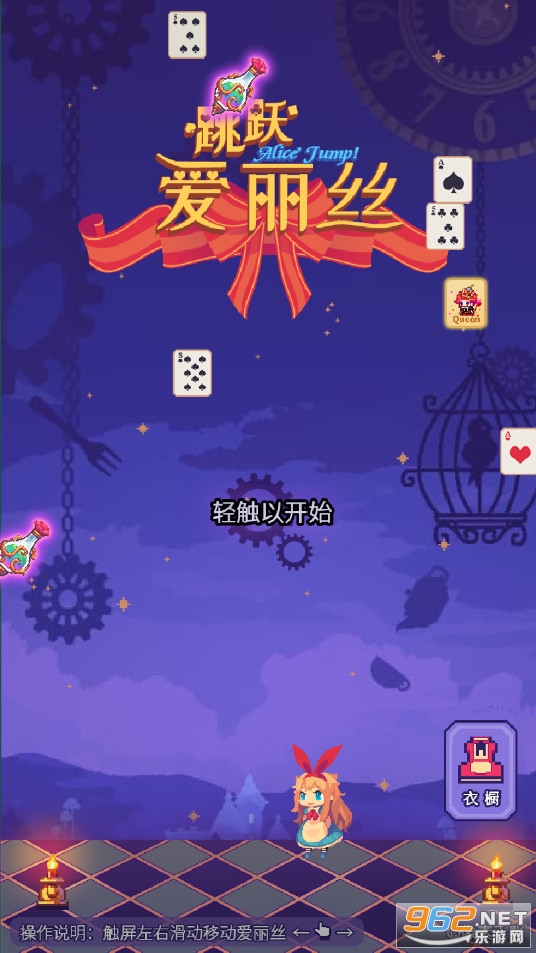 爱丽丝跳跃中角色不停的跳跃,玩家唯一要做的就是左右移动。
