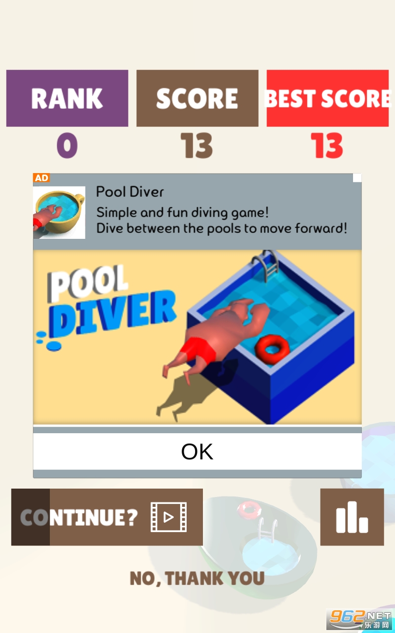 《泳池跳跃 Pool Diver》是一款有趣的休闲娱乐游戏。灵感来自之前火爆朋友圈的小程序《跳一跳》。