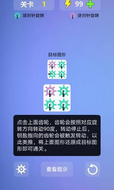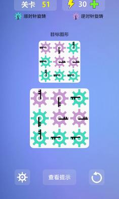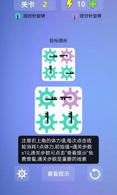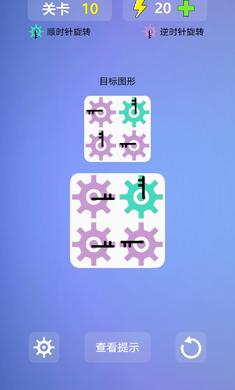 一款非常有趣的休闲益智闯关游戏,游戏中玩家需要高速的进行模拟来完成目标图案的选择,在限定的次数内完成所有的操作,游戏的玩法轻松有趣,按照不同的方向来旋转齿轮,游戏的玩法轻松有趣,越到后面齿轮就越多关联就越复杂,推荐给喜欢休闲益智游戏的玩家。