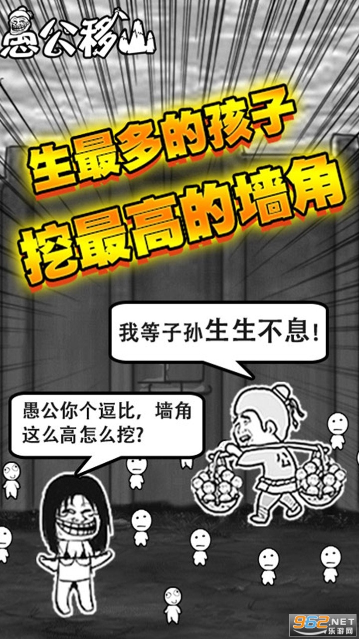 愚公移山h5是一款以愚公移山的故事为背景的休闲娱乐游戏,愚公移山h5玩法十分有趣有创意,玩家在游戏中将化身愚公,你需要不断绵延子嗣,成千上万的子孙后代不断出生,同时要防止智叟破坏生孩子行动,关卡十分奇葩有趣,精彩不停,感兴趣的玩家千万不要错过!