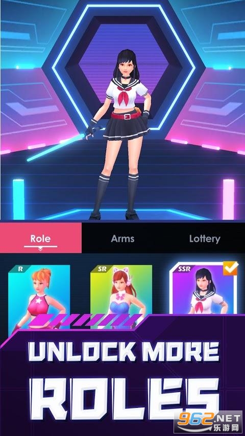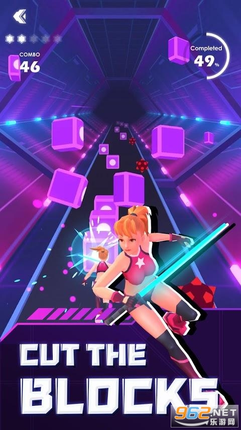总体来说是一款非常酷炫的音乐节奏类游戏,和节奏光剑十分的类似,跟随着音乐的节奏类型点击操作,利用光剑去劈砍即可,玩起来的操作还是挺丰富的哦,而且拥有极佳的打击感,喜欢的亲们赶紧下载吧。