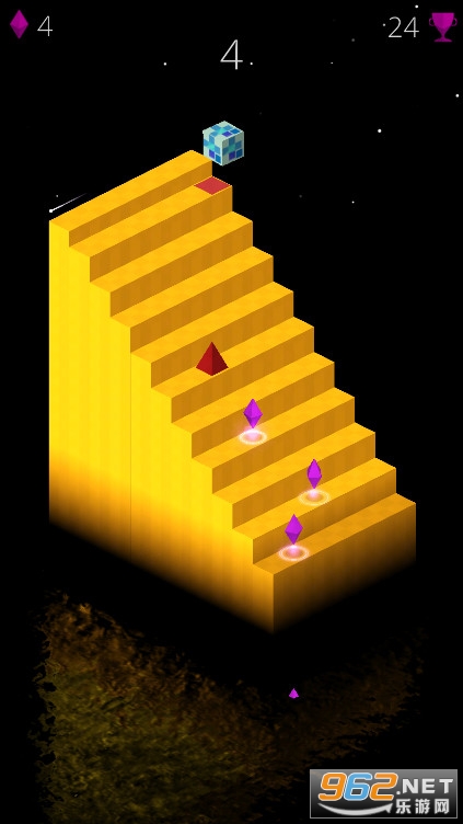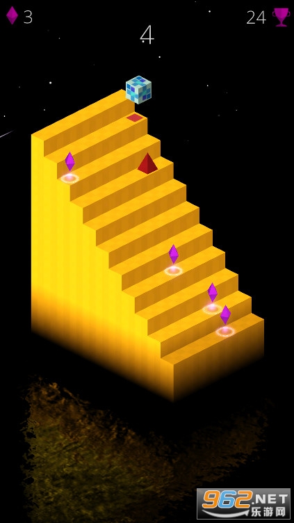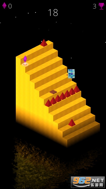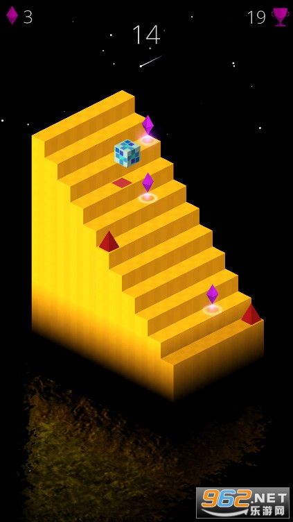 1、游戏的玩法很简单,按住屏幕让这个小方块跟随环形楼梯一直上升;