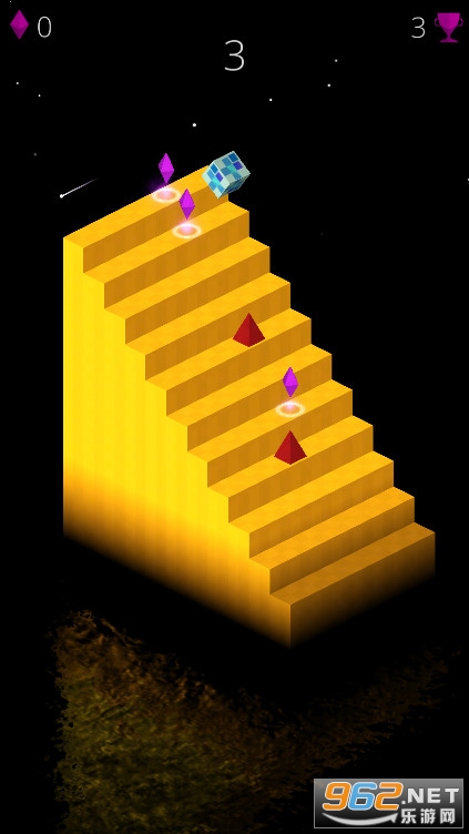 《无止境的楼梯最新版》是一款敏捷跳楼梯游戏,在这个黑暗的世界中只有一座无尽的楼梯,你的小方块会自己从上往下跳跃楼梯,楼梯上不仅有钻石,还会有地刺,你要让你的小方块躲避这些地刺,不断的向下跳跃。