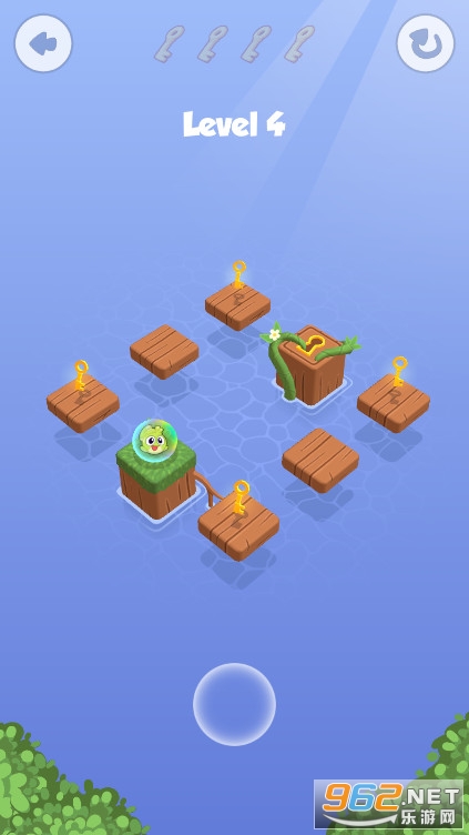 《反弹解谜冒险安卓版》是一款高清可爱的跳跃闯关游戏,池塘里有一只很可爱的小青蛙,你要让小青蛙跳起来,跳到木板上收集木板上的钥匙,只有将钥匙全部收集完毕你才能打开木板上的出口,你要思考一下跳跃的路程,因为木板在青蛙跳跃之后就会消失。