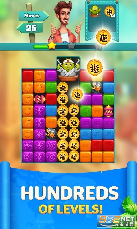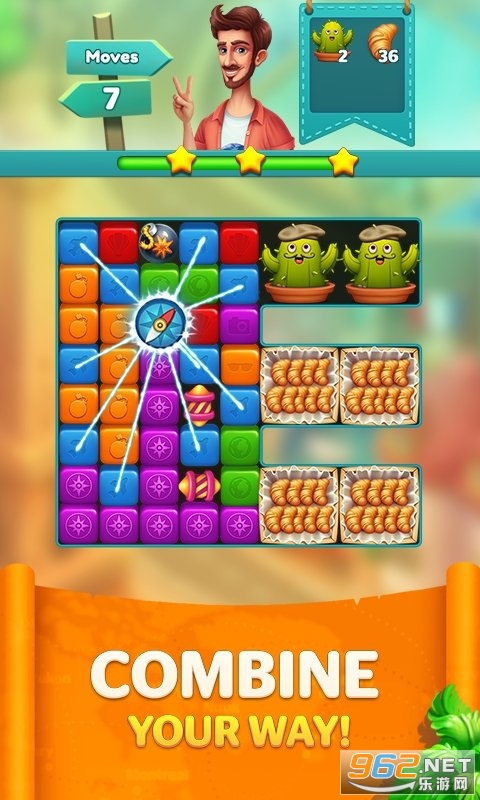 相连的方块越多,获得的积分将也多,也能赢得更多星星;