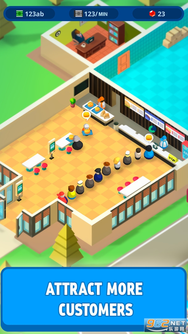 成为这个城市的快餐店大亨,你需要更好的管理你的快餐店,升级更多店面,准备更多美食,吸引更多客人;