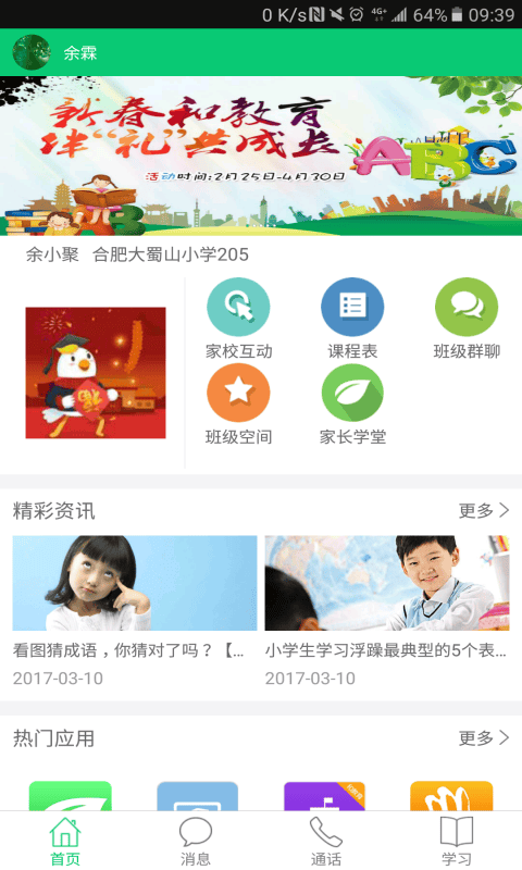 2.家长:“和教育”是家长和教师间稳定的沟通渠道。家长可以与教师随时沟通,掌握孩子和班级的情况,更好的帮助孩子学习。也可以了解到科学的家庭教育方法,解决孩子成长难题
