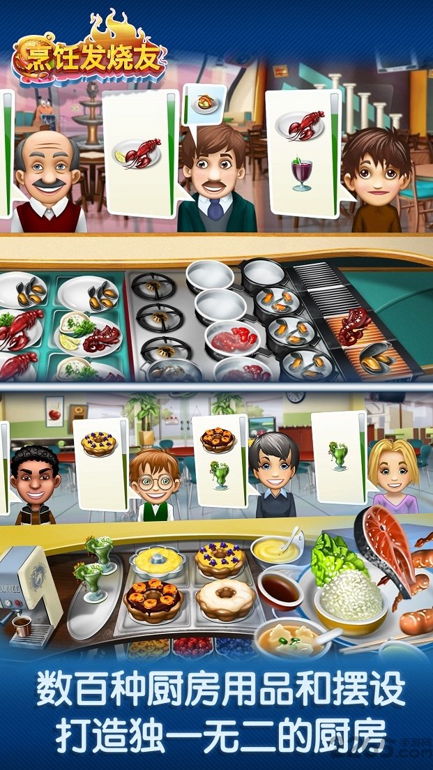 《烹饪发烧友》免费的模拟烹饪游戏,烹饪世界各地的美味佳肴与诱人甜点!烹调是一份辛苦的工作,不仅考验你的手艺,同时还考验你为客人调配的艺术以及服务态度。这款游戏将为你提供一个了解烹调的机会。在这里,你可以发挥你的想象,开设一家餐厅,招募你的员工,服务你的客人,烹调他们喜欢的食物吧!