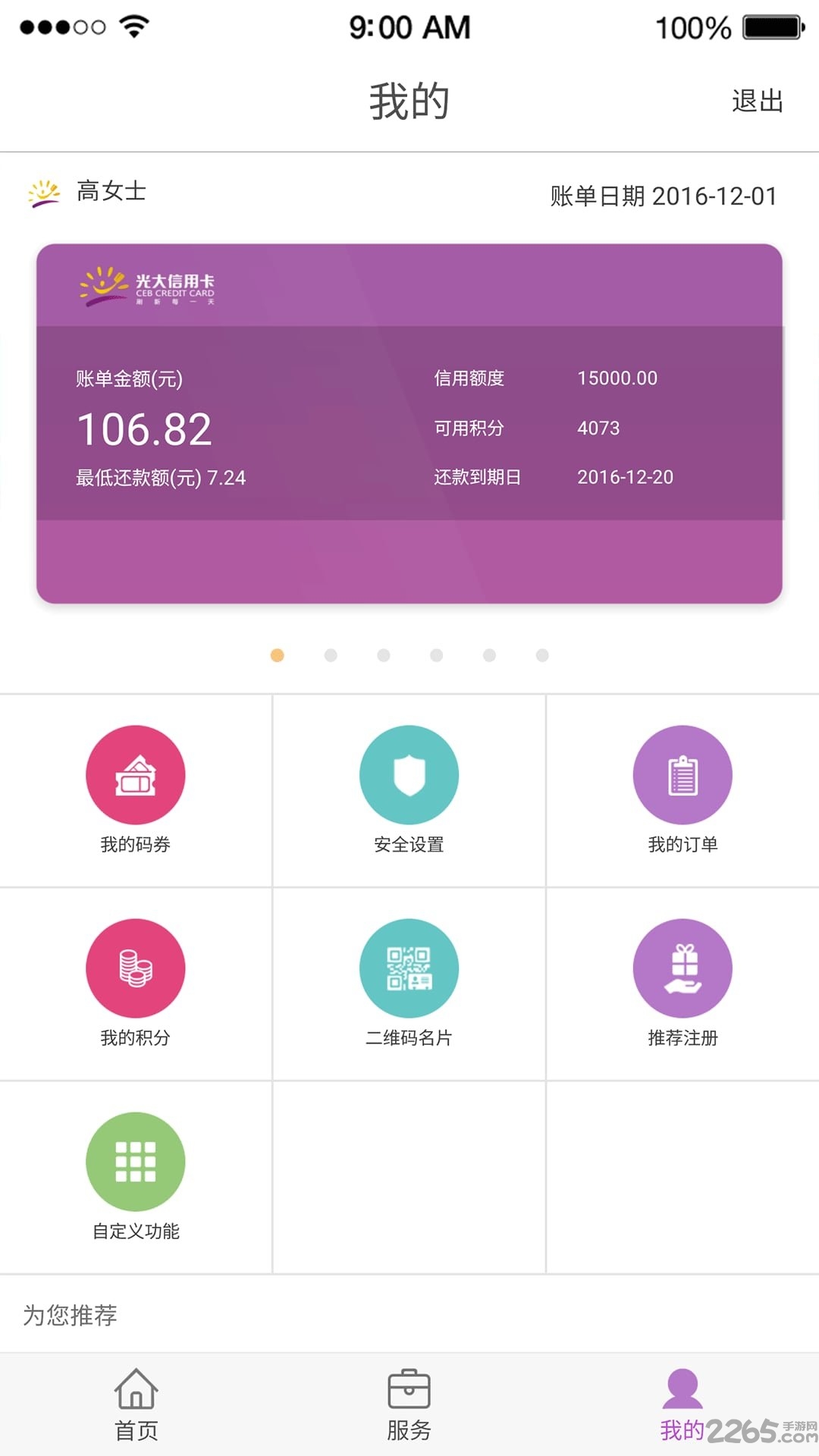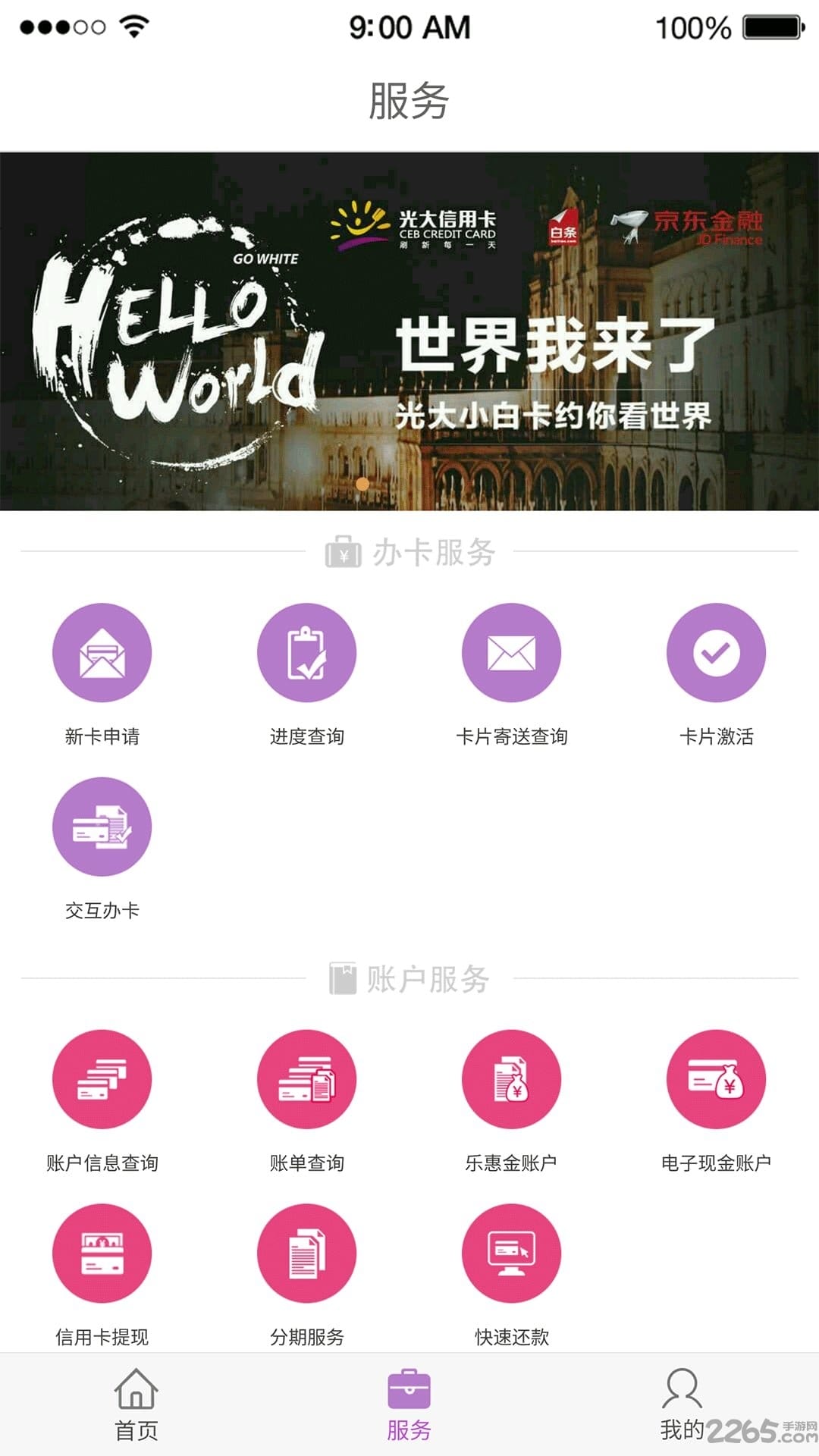 1.务" 提供全部的服务功能,包括办卡服务、账户服务、优惠活动、特色服务、设置等,为您提供全方位的信用卡管家服务.