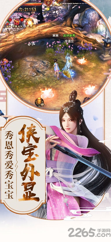 一代大侠,功成名就,当然要跟心爱的TA一起生个侠宝尽享天伦之乐。养育宝宝可以使用论语、诗经、道德经等助侠宝快速成长,侠宝长成将助力2265玩家提升武学境界、内功心法。