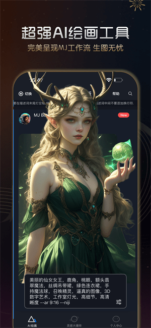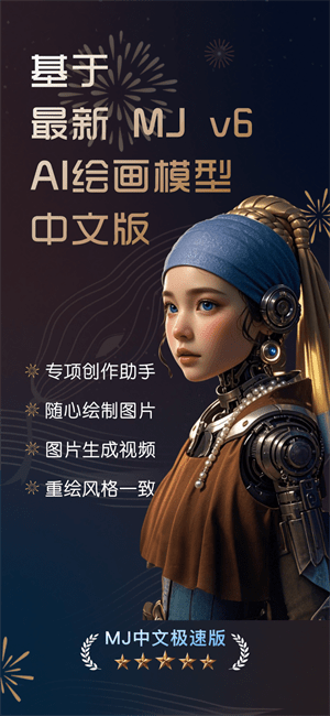 MJ中文极速版:全能AI绘画软件为有画画需求的用户打造了能够了解生成所需图画的ai智能绘画工具。通过输入关键词以及选择风格类型后即可得到全新作品,就算没有绘画基础也能够轻松上手。