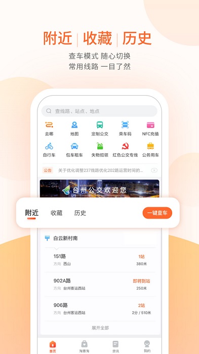 台州出行app苹果版是一款台州实时出行的公交软件,为你提供了很多的乘车攻略,可以直接查询相关的车辆信息,可以准确的查找到附近车辆的状况,使用起来很方便的,还能直接进行路线的规划,节省更多的时间。