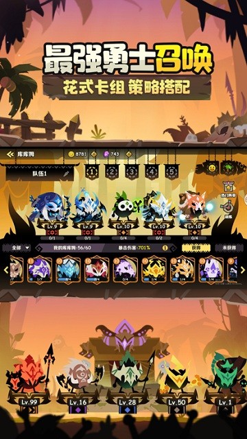 五个勇士一组,数十个勇士彼此搭配,解锁数百种组合!