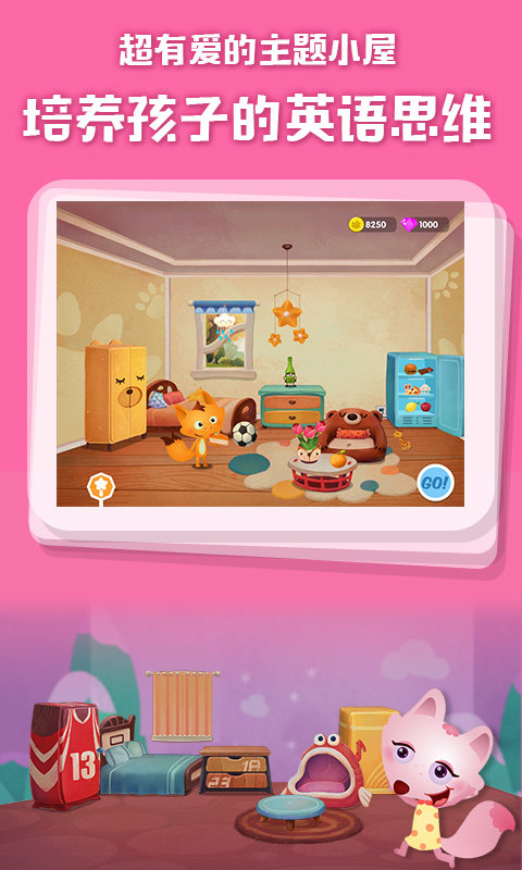 孩子可以装扮自己的小屋,在装扮中将英语单词与日常生活物品一一对应,让孩子将学到的英语单词熟练应用于日常生活中。