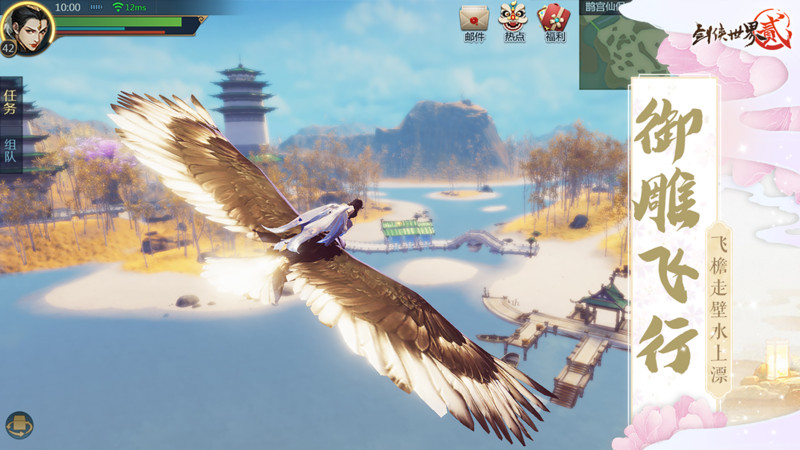施展六段式大轻功,你可以在城池中飞檐走壁,在水面上施展凌波微步,也可以跳到树梢上俯瞰风景,无拘无束畅游江湖。