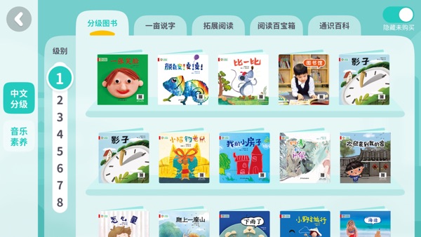 涵盖一亩中文分级阅读预备级到7级数字助读内容,根据不同年龄段孩子认知特点设计,配合绘本内容,帮助孩子全面发展,爱上阅读。