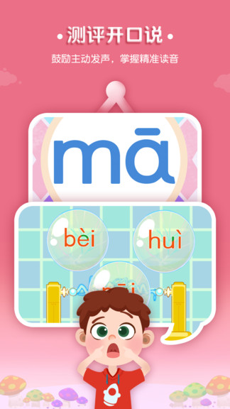 5、快乐学习融合了笔顺、字母发音、汉字拼音,以可爱的卡通插图和高品质的动画,让小朋友掌握标准的拼音发音与拼读。