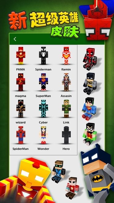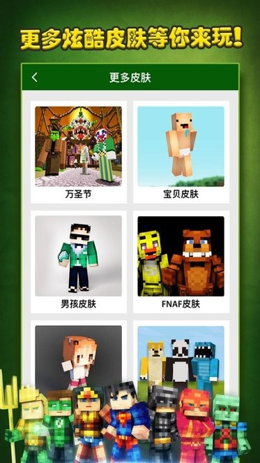 内置超多皮肤,游戏工具等。可以自定义创建游戏角色,创建喜欢的游戏皮肤。