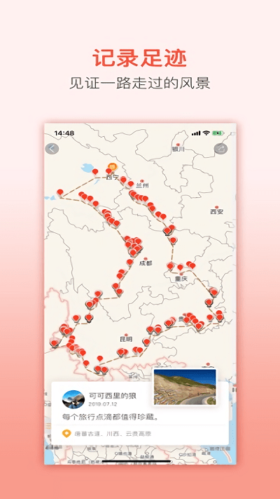 旅刻app苹果版是一款非常好用的出行旅行服务软件,在软件上能够清晰的记录下你经历过的途径,还有一些旅游中的感悟,用起来十分的不错,还有很多的旅行攻略,感兴趣的朋友们快来下载体验吧!
