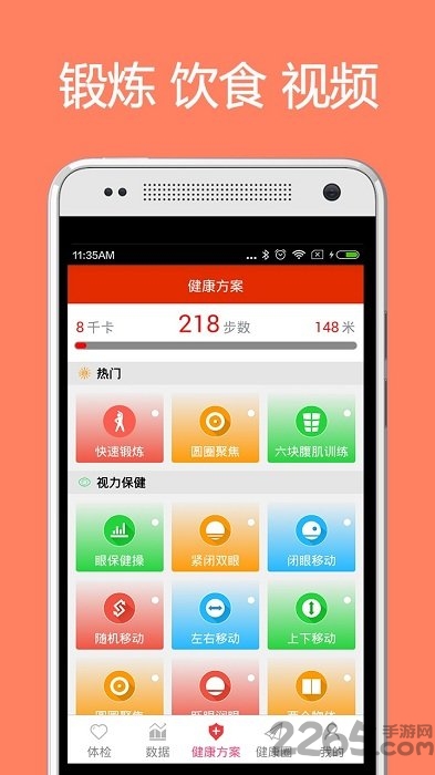 ▼七分钟锻炼、六块腹肌训练、臀部训练、腿部训练、眼保健操、减肥操、降压操等各种游戏化的交互式训练方案,统计管理每天的运动量和运动类型。
