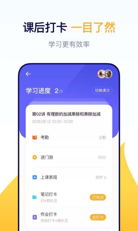 【多终端上课】学生可通过手机、电脑、ipad等多种方式上课,随时随地学习;