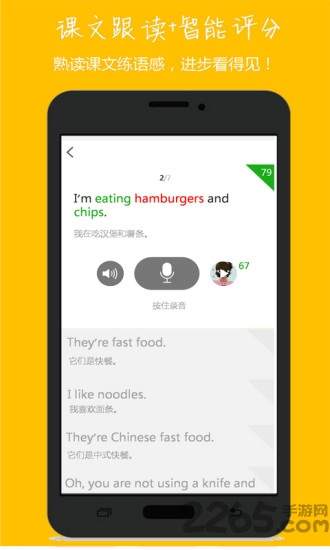 课文逐句跟读,智能评分,系统录音。