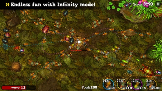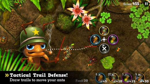 蚁丘保卫战:Anthill是根据真实世界的蚂蚁行为设计的塔防策略游戏,玩家要在游戏中指挥你的蚂蚁军团分工合作,采集食物,消灭来犯的昆虫,守卫蚁穴。游戏的玩法非常有趣,玩家需要点击蚁穴,以它为起点画出一条路线,然后选择要派遣的蚂蚁,不同种类的蚂蚁分工也不一样,工蚁负责劳作,兵蚁负责战斗,还会有会范围喷毒的特种兵蚁,投掷导弹的飞行蚁。此外还可以对蚂蚁进行升级,提升它们的战斗力。