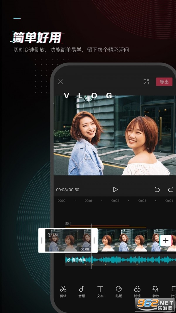 切割变速倒放,功能简单易学,留下每个精彩瞬间。