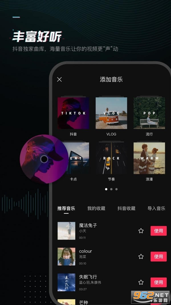 抖音独家曲库,海量音乐让你的视频更“声”动。
