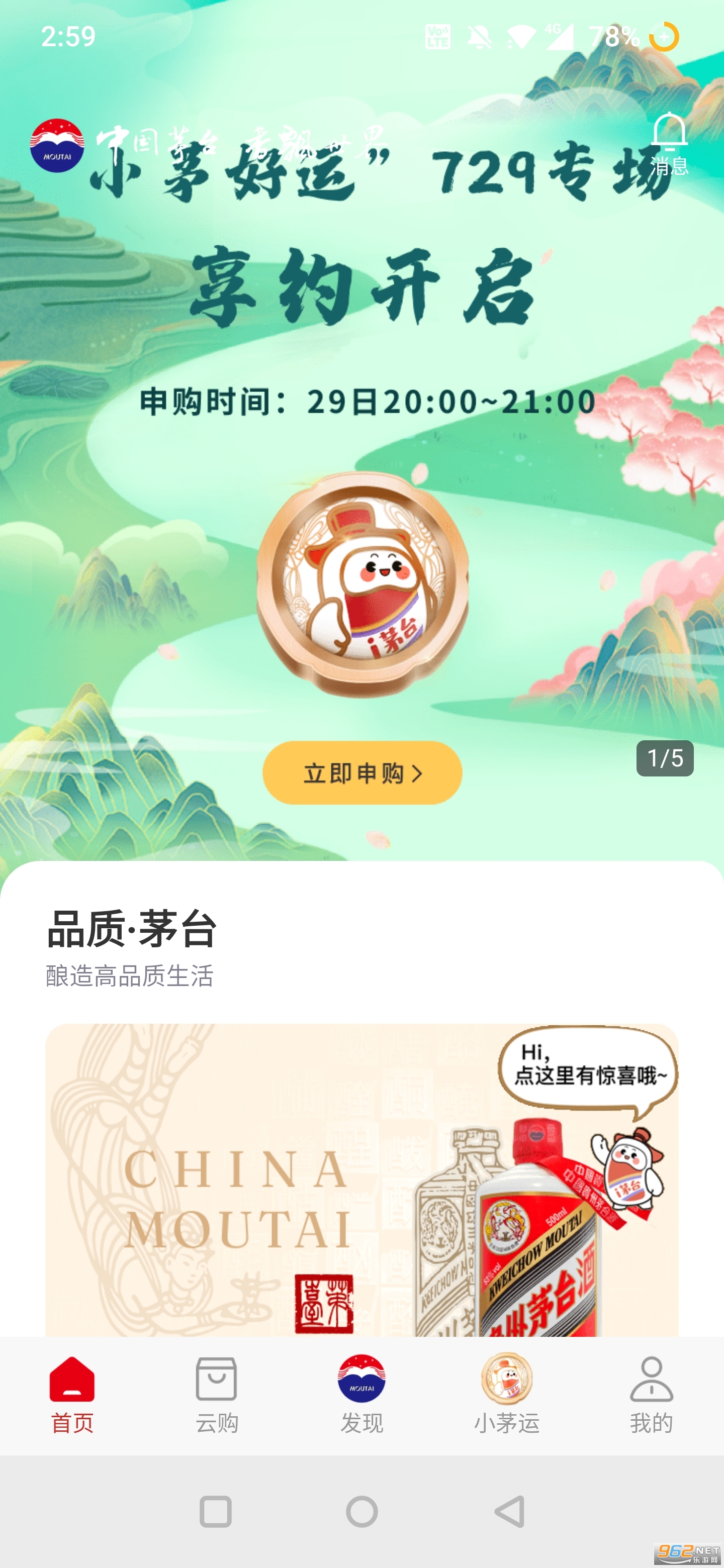 “I茅台”是由贵州茅台酒股份公司建设并运营的线上预约购酒平台,以“享约茅台”为品牌Slogan,为广大消费者提供放心便捷的购酒体验。
