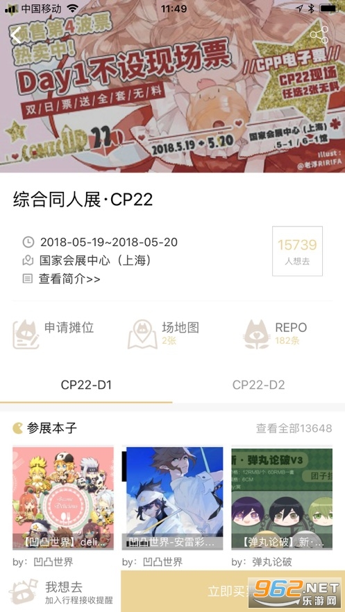 CPP app是一款专为漫展打造的作品展示交流及购票应用,是很多喜爱逛漫展的朋友必备的应用。